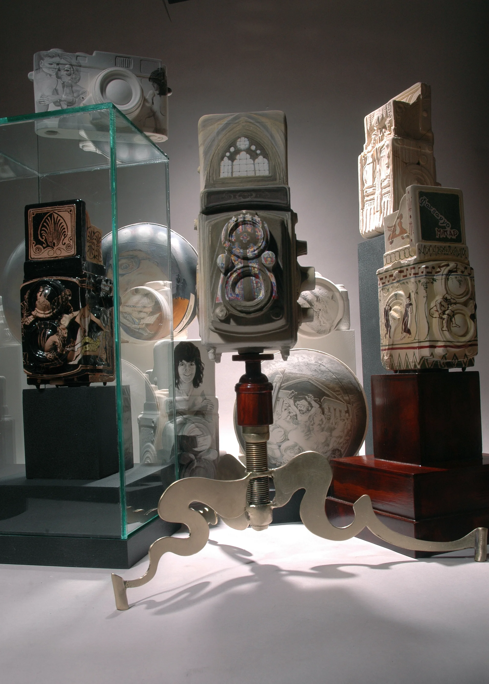 Numerous, and sometimes shadowy themes may lurk beneath the painted surface, however each is an autonomous, primarily decorative object.
