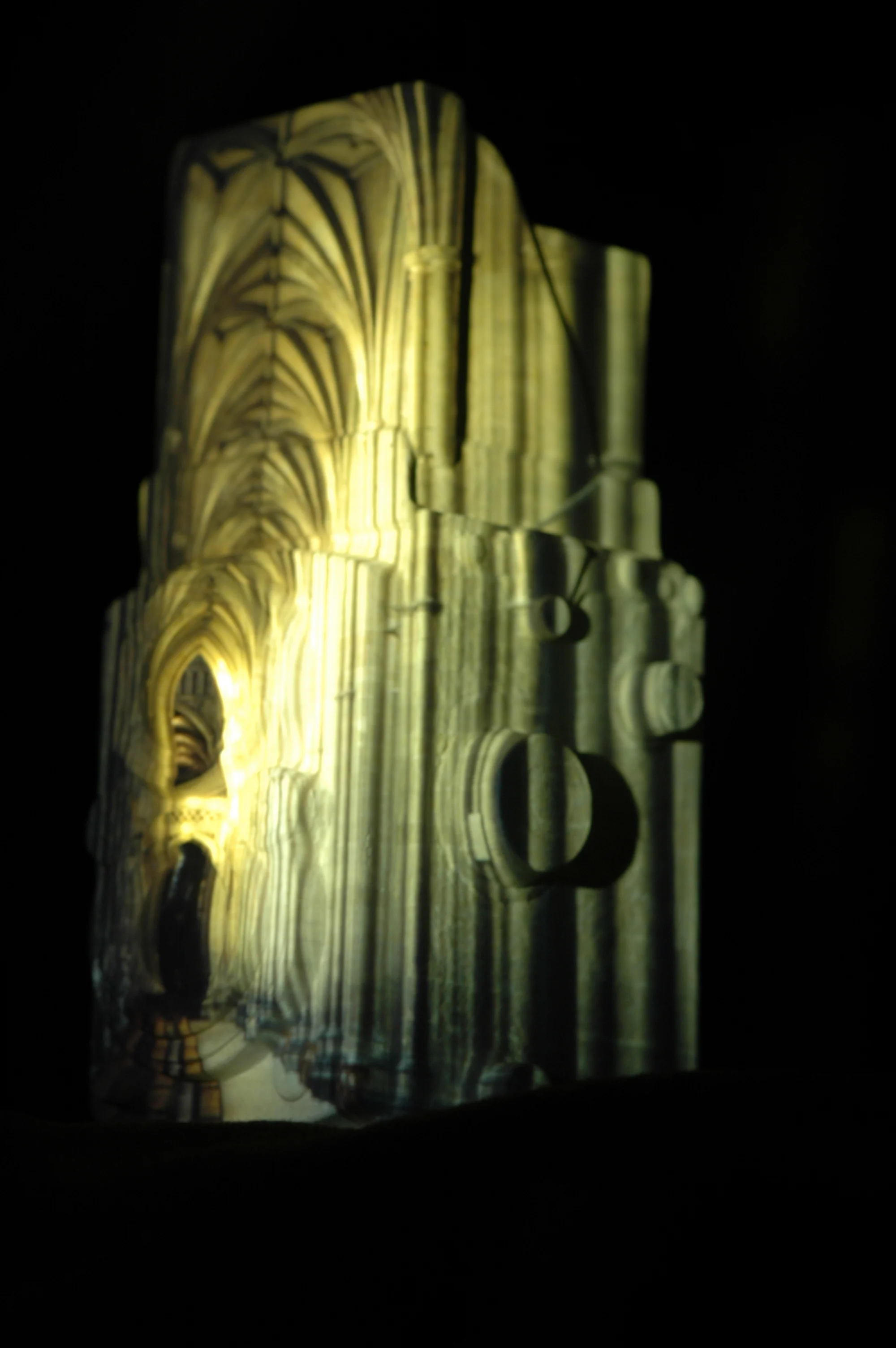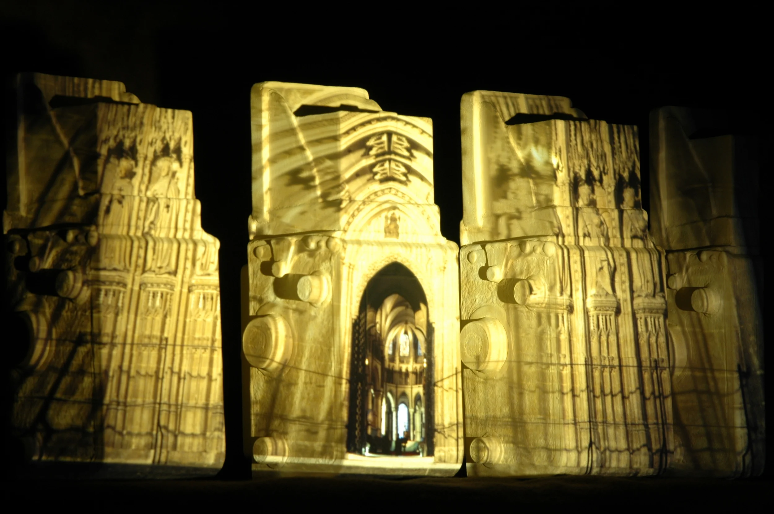 Scenarios, by convention, previously reduced to two-dimensional, single viewpoint images are re-projected over a nominated three-dimensional form.